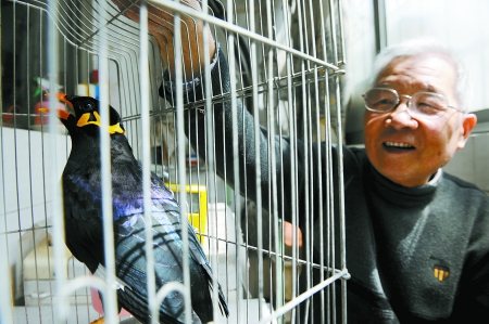 “一天喂一个蛋黄,你看颜色多正。”说起鹩哥,老两口甚是喜欢。