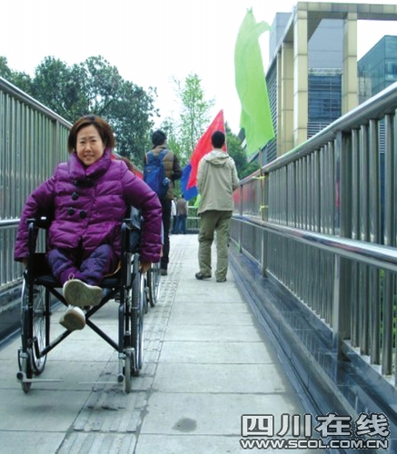 现在好了,在原来的天桥旁边,多了一座105米长的残疾人专用天桥,直接横跨在残联两座大楼之间。