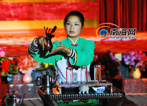 茶艺展示中国十大名茶——都匀毛尖。(南海网记者邓宇摄)