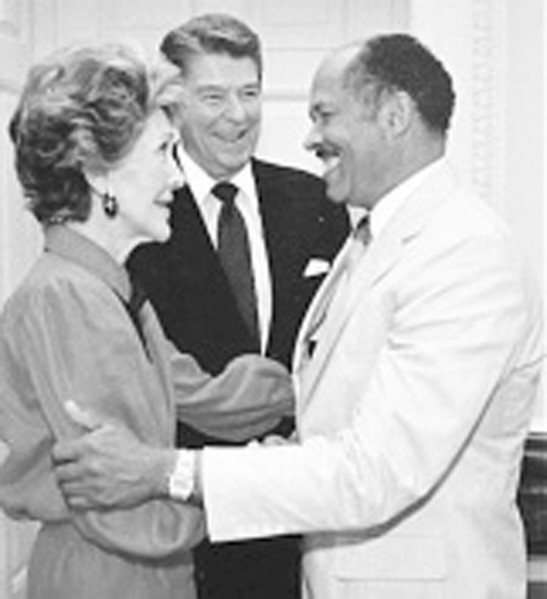 1986年,艾伦离开效力34年的白宫时,里根为他签名,南希则紧紧地拥抱送别。(谢彤)
