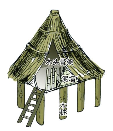 干栏式木骨泥墙建筑样式假想图 杰清/制图