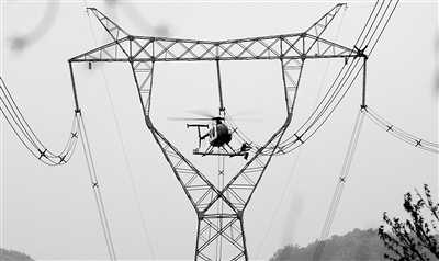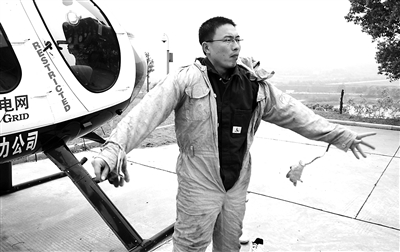 昨天下午,直升机载着两名线路工人,总共14次接近高压线,在不停电的情况下,完成了在安装标志球、修复受损线路等一系列线路维护工作。