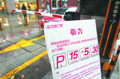万达广场地下停车场门前,新的收费标准让车主们有点郁闷。均为陈飞摄