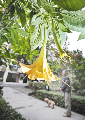 本报讯 (记者 邹宇)漂亮的花朵下,掩盖的却是剧毒。昨日,南岸四公里一小区的居民罗女士忧心忡忡:在自己居住的小区里,居然种着几株曼陀罗花。
