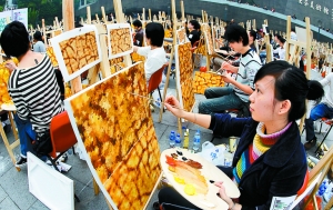 今年1月28日,世博会深圳馆大芬分现场系列活动之“巨幅油画绘制”在大芬美术馆前广场举行,于佳薇夫妇郑重在画板后面写上自己的梦想:让全世界了解大芬。他们是当天参加集体创作的507名画家画工之一。当时,组织者给每名参与者两幅样板,要求他们按着样板画,每个人还要在画板背后写下姓名、年龄、籍贯和自己的梦想。