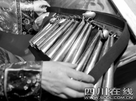 “腰上的铁片,最早是用猪肋骨做的。满族早期猎人打猎时,身上挂猪肋骨,风吹动时,骨头发出响声,能吓跑猛兽。后来就慢慢沿袭成今天的风俗。”赵国志说。