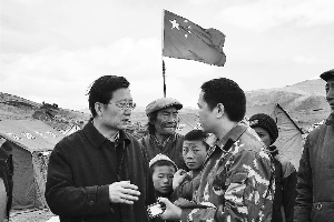 “我们的省委书记来看我们了!”15岁的藏族男孩旦巴达杰自豪地告诉记者。昨日上午10时40分左右,记者一行正赶往距离结古镇70公里的另一个主灾区隆宝镇采访。在经过一个名为“措多”的小村庄时,恰逢青海省委书记强卫在当地慰问灾民。听说记者随同深圳救援队伍第一时间赶赴玉树并向深圳人民报道抗震救灾的进展时,强卫书记首先表达了对深圳人民的由衷感谢。“请你们一定要把这一点带到!”