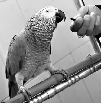 昨日,记者走进电力新村居民王德华家,正好看到—只红屁股的灰鹦鹉在鸟架上跳舞。听到电话铃响,它接着发出—种沙哑的男声:“喂,讲话唦。”