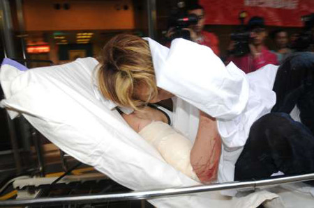 其间,一辆载着病人的救护车驶经现场,救护员见状立刻停车,先为两伤者包扎,再将他们送院。