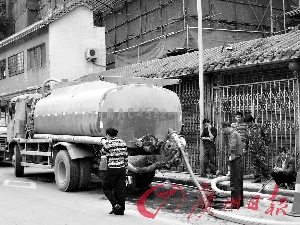 本报讯 (记者林洪浩 摄影报道)昨日有市民报料,称荔枝湾路开始截污!环卫清洗车开进荔枝湾路,通过水喉管将路面底下暗涌的淤泥抽进车罐。而就在昨日下午,古玩店商户陆续收到一份《安民告示》,有关部门通知,从4月20日至9月30日对荔枝湾路进行围蔽截污施工。看来,僵持了半年之久的荔枝湾路“揭盖复涌”工程似乎要动真格了。