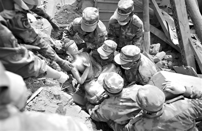 在地震发生后的72小时里,解放军和武警部队官兵从废墟下成功救出1200人。
