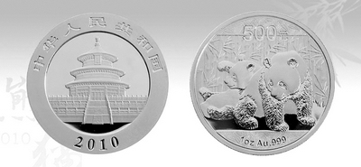 图为重量为1盎司的2010年版熊猫金币。目前长沙的市场价在8700元/枚左右。