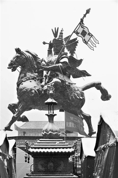 在那巍峨的朋措达杰山下,嘉那嘛呢石堆祈福的圣地,勤劳而朴实的玉树人民一直坚信着:“只要格萨尔王的铜像不倒,玉树就还在”……