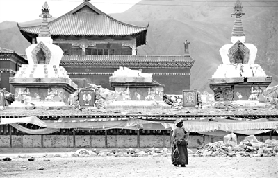 历经500年的大经堂被毁,佛学院被毁,8名僧人遇难,90%的房屋成危房……结古寺活佛丁巴,向记者介绍了寺庙在地震中受损的情况。
