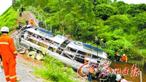 本报惠州讯 (记者秦仲阳通讯员吴仁摄影报道)昨天上午8时35分许,潮莞高速公路惠州段发生一起特大交通事故,一辆核载42人、实载45人的大客车侧翻路外,3人当场死亡,2人送医院抢救无效死亡,3人重伤,3人轻伤。目前,善后工作已有条不紊地展开。