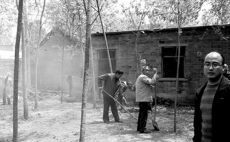 在徐林东家蒿草满地的院子里,大刘镇镇政府的几名工作人员正在铲除杂草、修缮房屋。