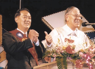 李登辉(右)与亲民党主席宋楚瑜(左),曾经情同父子,也曾经反目成仇,两人政坛交手数十年,证明“政治没有永远的敌人”。资料照片