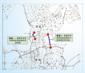 布吉片区现有人口150多万,主要依靠深惠路和布吉关进出特区。为系统解决布吉交通问题,市交委提出将布吉与罗湖路网进行整体衔接研究,启动新增联系通道的可行性研究:一是罗岗路南延下穿围岭公园接特区内翠竹路;二是布吉西环路南延伸接特区宝岗路。