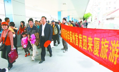 乘坐福厦动车的旅游团抵达厦门。祝敏松 摄