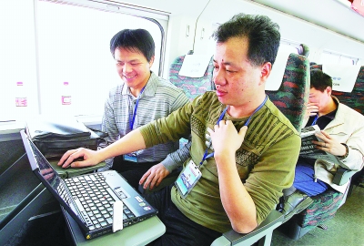 平稳和安静的动车车厢里,乘客们在利用电脑上网。关建东 摄