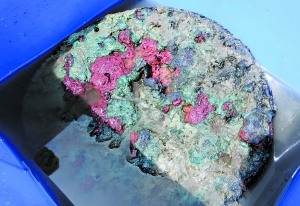 在众多瓷器中,一块直径约60厘米、表面斑驳泛着铜锈的铜板引起记者的注意。“南澳Ⅰ号”考古现场文物组人员告诉记者,这样的铜材还发现很多。孙键也介绍,这些铜板是一摞摞堆积的,而考古现场还出水了为数不少的铜钱。“要不是走私,也是夹带,实际上从宋朝开始铜料已经实行了禁运,明朝万历年间更是如此。”