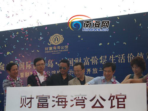 南海网5月3日三亚消息(南海网记者冯丹) 5月2日,财富海湾公馆在继新春开盘热销之后,样板示范区今天隆重启幕。活动现场,演艺明星张涵予乘跑车抵达现场红地毯,并在财富海湾公馆现场签名。同时到场的还有地产专家、中国房地产及住宅研究会副会长顾云昌.财富地产集团陈泽树总裁亲临现场致辞。