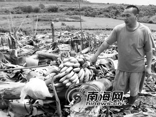 本报新闻热线66810222海口5月3日讯(记者胡诚勇实习生黄涛摄影报道)今年香蕉价格不错,可眼看地里的香蕉即将收获上市,这几天,海口一香蕉种植户何先生却怎么也高兴不起来,因为在4月30日那一天,他的香蕉种植园里有400余棵香蕉树被人拦腰砍断,损失惨重。