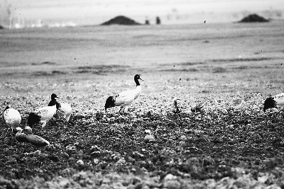 纳帕海保护区内的黑颈鹤和赤麻鸭。刘 强摄