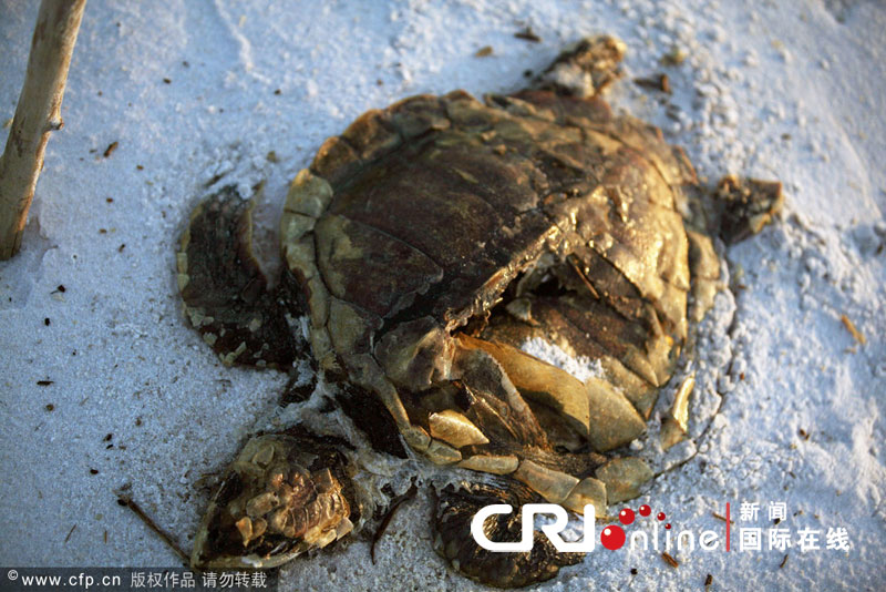 墨西哥湾漏油事故致大量动物惨死(高清组图) 国际在线 国际在线官方账号 2010.05.0709:43 关注 2010年5月6日消息,自从墨西哥湾发生石油泄露事故以来,大量海龟、鱼和海鸟死亡。它们的尸体被冲到密西西比州的海滩上。
