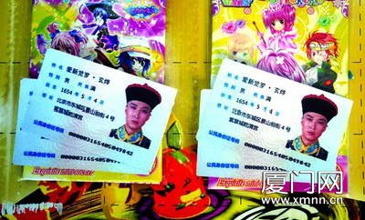 据店主介绍,这些“身份证”都是从附近的批发市场进的货,一整版共有20袋“身份证”,每袋2张售价5角钱,购买的群体多为在校学生,主要用来当书签或用来炫耀。店主还说,以前还卖过曹操、汉武帝的身份证,都卖得很好。