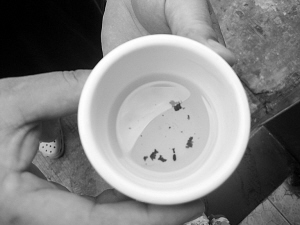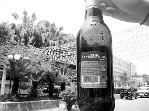 昨天上午,当刘先生把倒在茶杯里的啤酒出示给记者时,记者还以为是一杯茶水,因为在杯子的底部有很多像碎茶叶的东西。但仔细一看又不是茶叶,而是一些深褐色和黑色的物质。看到记者怀疑的表情,刘先生又拿出了酒瓶。因为酒瓶是深褐色的,看不清里面的东西。可是当记者将酒瓶对着阳光,就看到了悬浮在所剩不多的啤酒中的沉淀物。