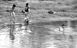 昨日中午,在大花桥村的盘龙江上游水坝处,5名刚干完活的村民穿着内裤在河里游泳,还有几个十岁左右的孩子光着屁股在河里玩水,连狗也跳到河里享受清凉。公路距离河仅四五米,一名路过的年轻女子捂着脸慌忙快步走开,“真不像话,大白天的光着身子在河里洗澡,太难看了。”