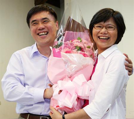 台北市长郝龙斌(左) 9日与妻子高阆仙(右)在市长官邸用餐共度母亲节,高阆仙说,上次与郝龙斌吃饭已经很久,记不得了。