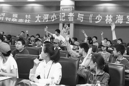 5月8日,50多名大河小记者参加了在河南日报报业集团四楼新闻发布厅举行的《少林海宝》主创人员见面会(上图)。