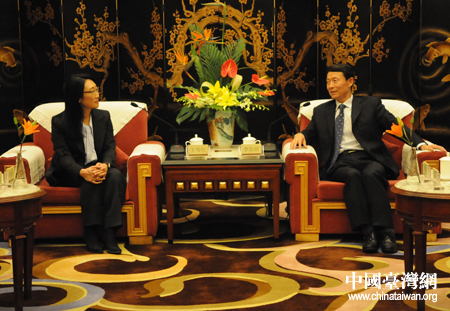 四川省委副书记李崇禧(右)会见台湾威盛电子集团董事长王雪红(左)一行。图片来源:四川省台办