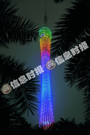 昨晚夜幕降临时,细心的广州市民会发现,位于珠江河畔的广州电视塔换上了一件“七彩新衣”。