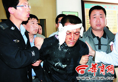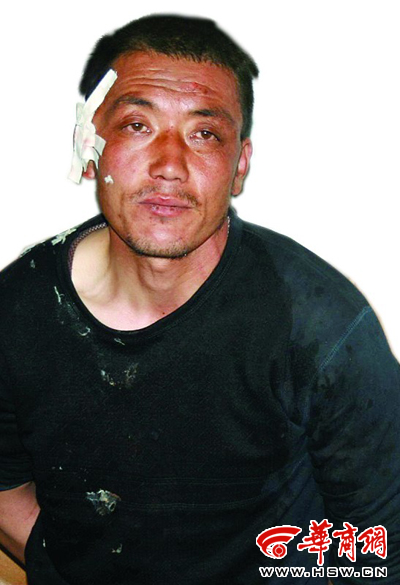 昨日上午9时30分,获知宋利荣被抓后,记者立即驱车前往其被抓的地方,在途中看到押解疑犯的警车。透过车窗,记者看到宋利荣头部裹着一块布,满头是血。随后他被送往医院治疗,所幸只是外伤。