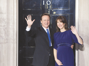 一个半小时后,卡梅伦在唐宁街10号首相官邸外发表上任讲话。他和有孕在身的妻子萨曼莎向记者和民众招手致意,面带笑容。