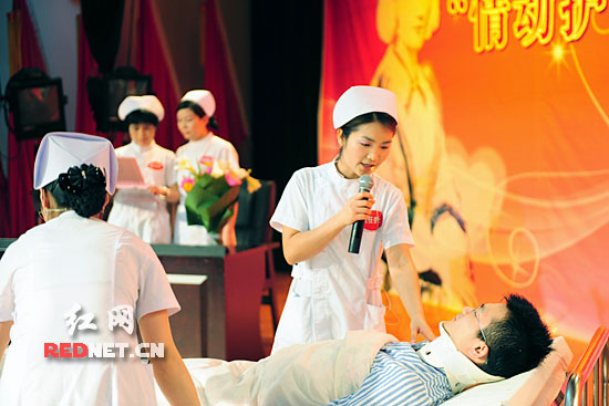 红网长沙5月12日讯(记者 董雷 通讯员 谭晓冬)5月12日是国际护士节,今日,一场别开生面的责任制护理护患沟通模拟情景剧竞赛在湖南省人民医院礼堂上演,500余名医护人员一起以这种方式隆重纪念第99个国际护士节,其中还包括4名男护士。