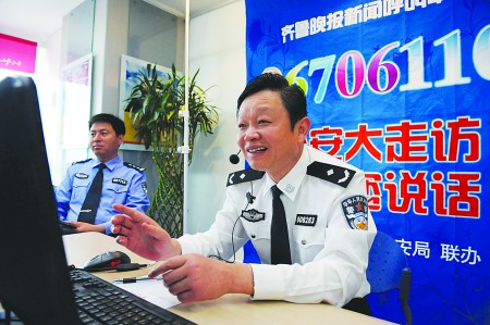 历城交警大队大队长杨明接听96706110热线。本报记者张中摄