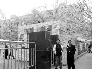 12时20分,记者来到位于岳阳街的曙光小学,这里的警戒程度与记者去过的103中学一样。