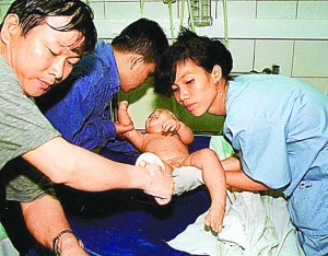 1997年9月3日,一架越南航空公司的俄制图波列夫客机坠毁。飞行员错误地在距离跑道几百米的地方着陆,导致机上65人死亡。当时唯一的幸存者是一名1岁男孩。图中金边医院的医生和护士们正在为这位唯一幸存者治疗。
