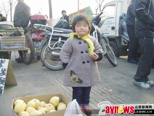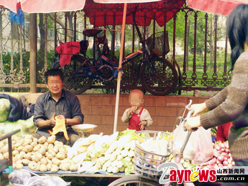 他们中的不少人为了能够近距离地照顾自己的孩子,便把孩子带到城市里讨生活,可是忙碌的生意让他们无暇更多的关注自己的孩子——在寒冷的冬天、炎热的夏天,那些小小的孩子只能在父母的摊位上追逐嬉戏,饿了啃点黄瓜吃个西红柿,有的小小年纪就帮父母看管摊位吆喝生意。