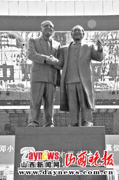11日,邓小平与哈默博士铜雕塑像落成揭幕仪式在朔州体育馆广场举行。26年前,邓小平与国际知名企业家哈默博士历史性的握手,催生了平朔安太堡露天煤矿。塑像由著名人物艺术雕塑家赵军安设计。