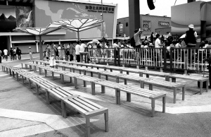 在上海世博园区有一排排身披五彩外衣的长凳,每条长凳由856个250毫升的牛奶饮料纸包装再加工制成,它们都来自上海世博会事务协调局、本报和利乐公司共同发起的“绿色世博‘椅’我为荣”牛奶饮料纸包装回收大行动。本报记者 郭新洋摄影报道