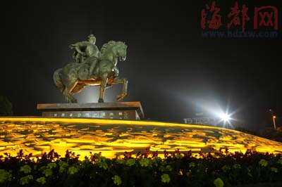 夜景灯光照耀下,陈元光雕像英姿焕发