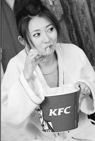 闫凤姣拍摄间隙吃快餐