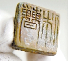 考古人员认真地辨认后,发现这是一枚铜质的篆文阴刻印章,一个篆体“休”字尚好辨认,可另外一个字体复杂的字又是什么?