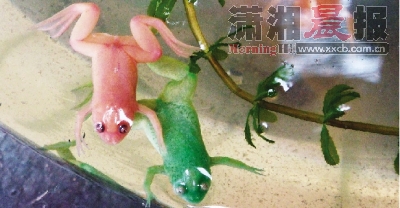 红色绿色"青蛙"现身长沙 通身碧透如玉(图)