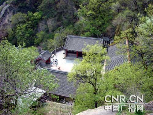站在此处,回首望整座寺庙,庙宇依山而建,错落有致,正殿居中,两旁配殿、钟楼、鼓楼相迎飞东阁藏经飞西阁讲学、雕梁画栋飞古色古香飞清戚鸿藻,在诗中赞道:“山重水复碧云端,路转峰回别有天,世外桃源今再见,几生修得到龙泉?”